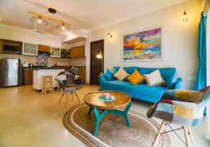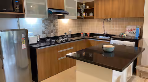 ➤ fully equipped modular kitchen with R.O, Faber stove, Microwave, Refrigerator, Toaster, Water Kettle, French Press.
