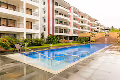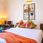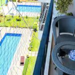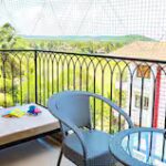 The large bedroom with an attached bathroom and a fully equipped kitchenette completes the aura of being at home-away from home. It opens into a beautiful balcony with a lounger and a coffee table, where you feel the cool sea breeze and great views of the lush green surroundings or the pool underneath. It also lits up with fairy lights at night for those dreamy, cozy nights.