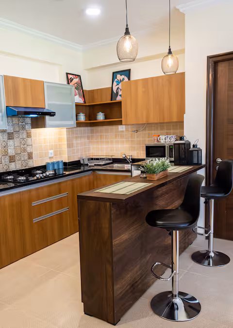 The large living room and the a bedroom with attached bathroom completes the aura of being at home-away from home. A private and large sit out space for those morning breakfast tea or the clear sky evening drinks will only add to your amazing experience at our home. If you wish to cook, the fully equipped kitchen is ready to serve you the delicacies of your choice.