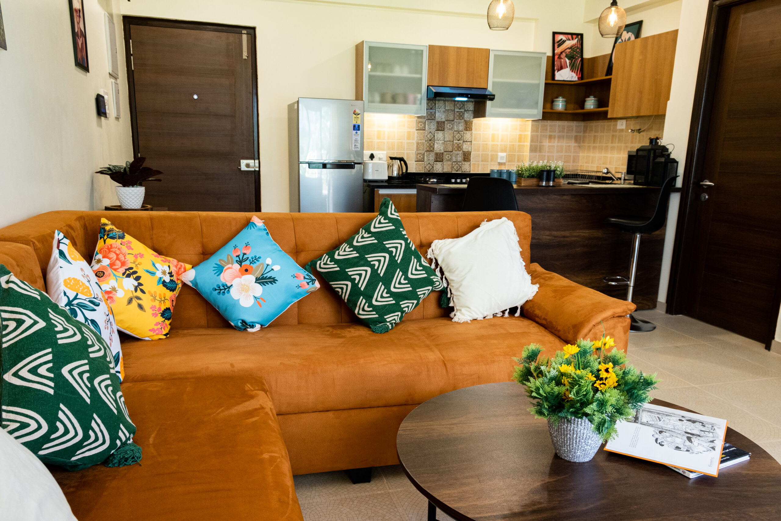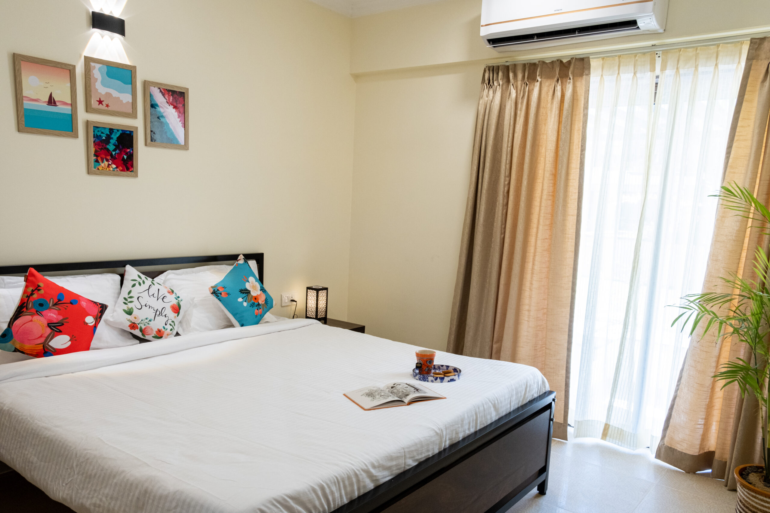 With all modern-day amenities, the flat is perfect for a couple or a family with 2 kids planning to holiday in Goa. You will have free access to 2 pools, jacuzzi, gym, steam & sauna room, indoor games and parking.
